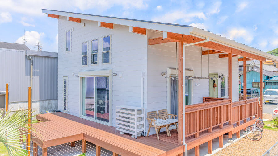 「海を眺めながら⾷事をしたり、広いウッドデッキで寛ぎたい」
