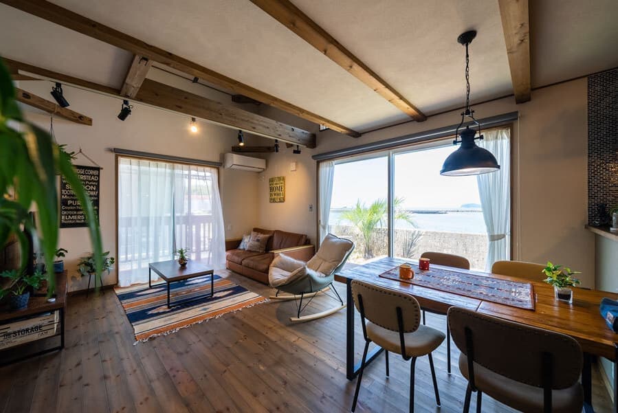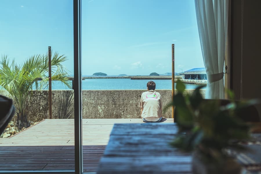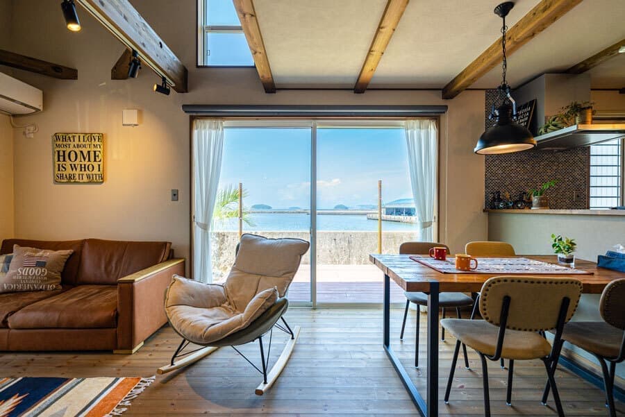 「海を眺めながら⾷事をしたり、広いウッドデッキで寛ぎたい」