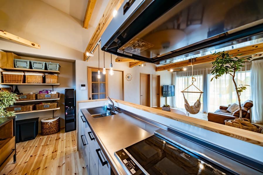 すぐ横にウッドデッキもあるので、お酒を飲みながらみんなでバーベキューを楽しめるのが魅力だ。