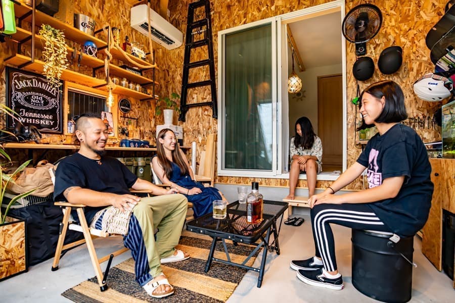 お酒好きな夫婦の「友達を呼んで家飲みをしたい」という希望から形にした空間だ。