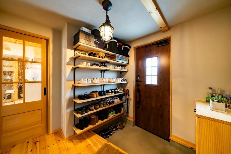 玄関のシューズ用オープン収納やキッチンのパントリーの棚、